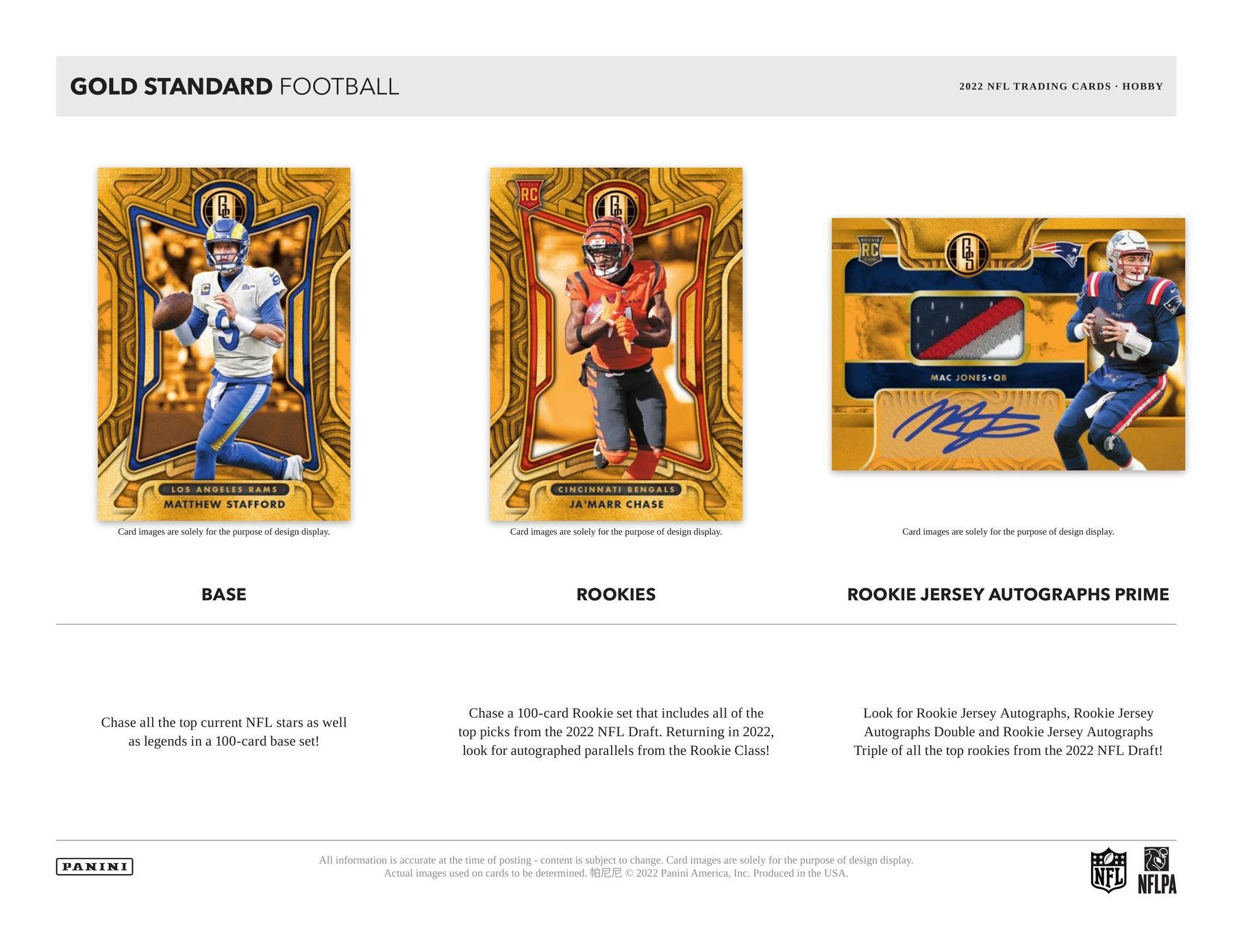 2022 Gold Standard football is loaded with all the top rookies, veterans, and retired stars the NFL has to offer.