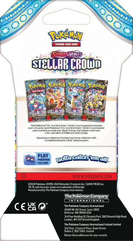 Descend into a world below the surface and discover the true potential of the Terastal phenomenon! The Legendary Pokémon Terapagos takes the throne, joined by Cinderace ex, Lapras ex, and Galvantula ex, all wielding brilliant new powers as Stellar Tera Pokémon ex. The newly discovered Hydrapple ex leads even more Pokémon ex into battle, and ACE SPEC cards continue to shake up the game in the Pokémon TCG: Scarlet & Violet—Stellar Crown expansion!