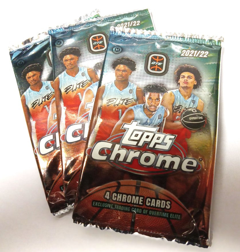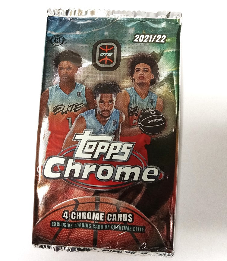 Each pack contains four (4) 2021/22 Overtime Elite Topps Chrome Basketball base cards.