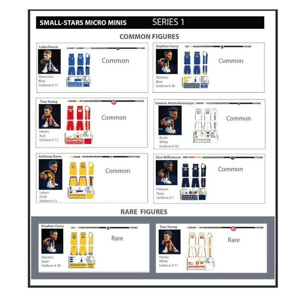 The Small-Stars Micro Minis will be released in two series for the 2022-23 NBA Season. Each Series will feature 6 different players with two of the players also being issued in alternative uniform variations. (Making a total of 8 different figures in each series.) Be sure to look for the latest entry into the Small-Stars family of NBA collectibles at a local retailer near you. They are going to disappear fast.