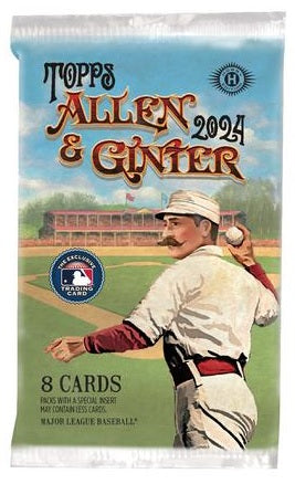 Each pack contains six (6) 2024 Allen & Ginter Baseball Base Cards + one (1) Allen & Ginter Mini Card and one (1) Full Sized Insert.