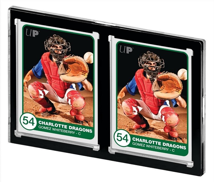 Sized to fit two standard size (2.5″ x 3.5″) sports trading cards or gaming cards up to 35pt in thickness