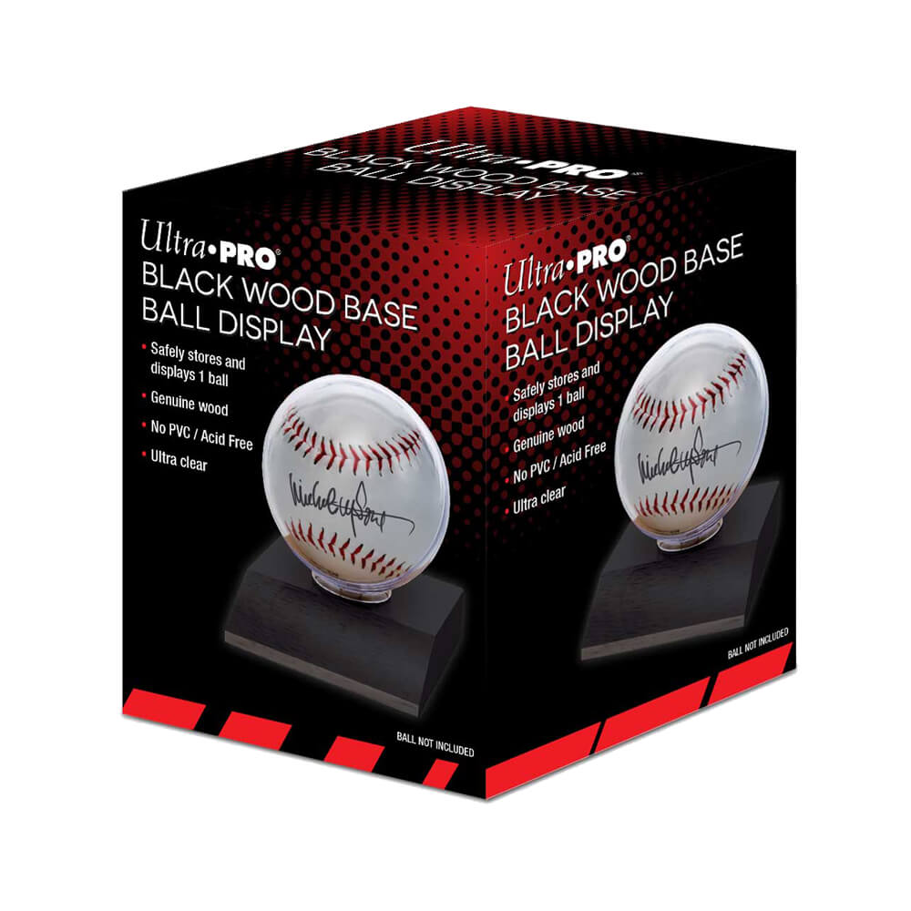 Protect your valuable memorabilia with Ultra PRO's baseball holder. The baseball is fully protected and enclosed in a round case to prevent contact with dirt and dust. The round case is installed on a sleek black wood base and is sure to be a welcome addition to any collector's personal collection. Baseball not included.
